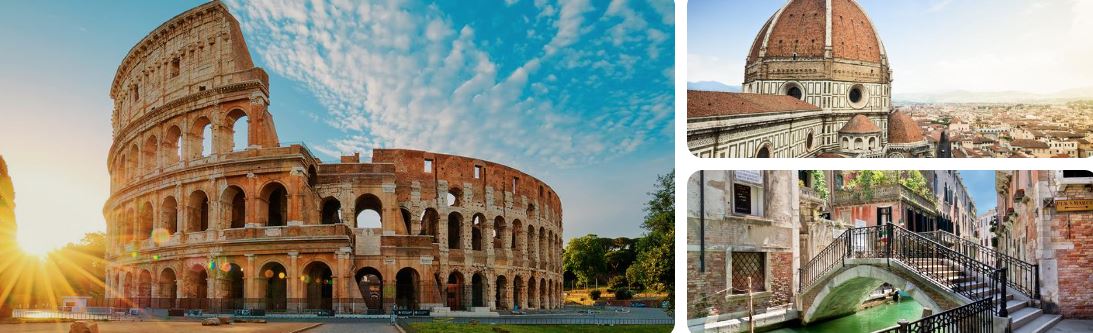 | Our classic self-guided tour of Italy's most iconic cities independently by train, from the legendary Colosseum in Rome to the Renaissance heritage of Florence and the romantic canals of Venice. | |||||